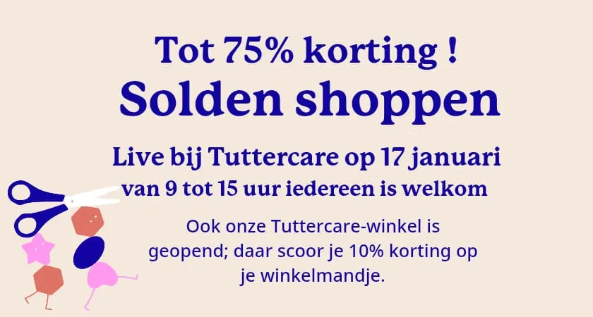 Outlet shopping bij Tuttercare : Zaterdag 17 jan van 9u tot 15u