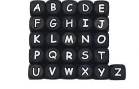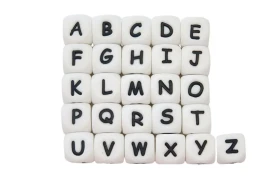 Siliconen Alfabet Wit - Zwart Schijfje 12mm