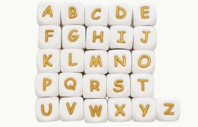 Siliconen Alfabet Wit - Goud 12mm