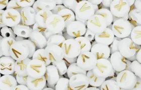 Acryl alfabet schijfjes 7mm - C31. 9x alfabet wit goud