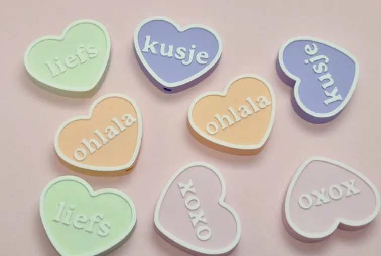 4 magneten: ohlala, xoxo, kusje, liefs