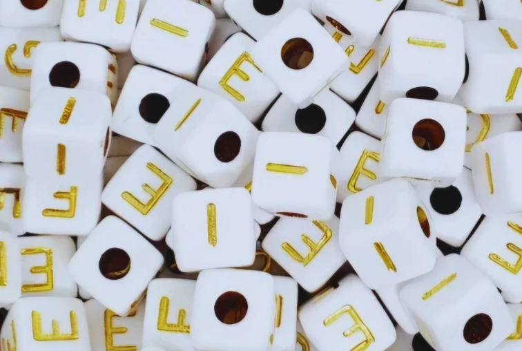 Acryl Alfabet 10 mm - Wit met gouden print