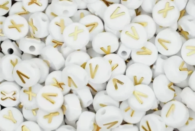 Acryl alfabet schijfjes 7mm - C30. 1x alfabet wit goud