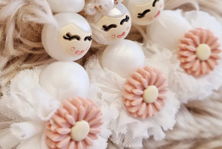 - Parelmoer wit: 3 x abacus klein, 3 x 9mm, 2 x 19mm