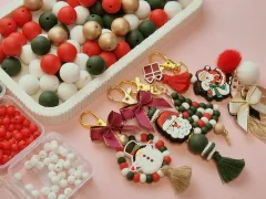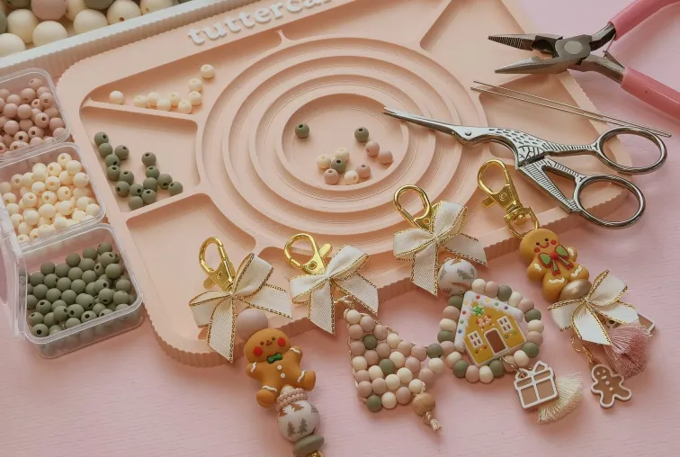 - 7 siliconen kralen Light Sparkle Gold/Zeegras/Soft Roze/Kerstprintkralen