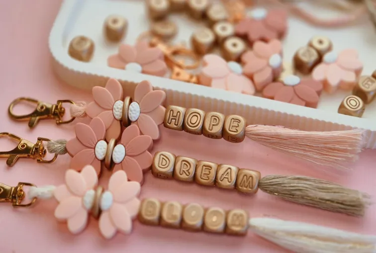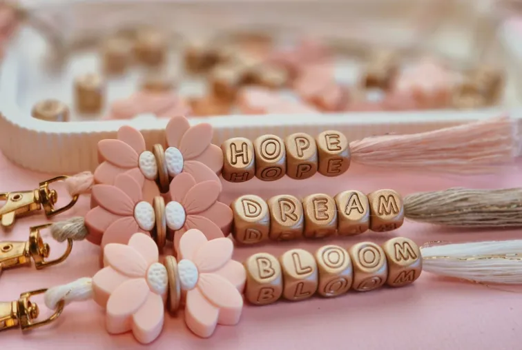 - Siliconen alfabet Light Sparkle Gold: dream, hope, bloom