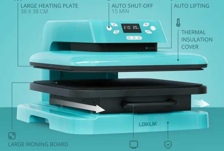 e LOKLiK Auto Heat Press is een slimme warmtepers die moeiteloos werkt met verschillende warmteoverdrachtsprojecten.