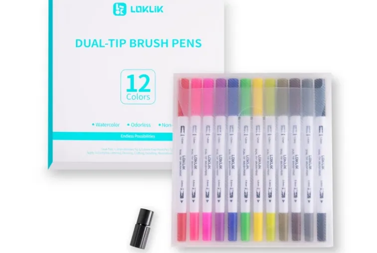 LOKLiK Dual Tip Brush Pens - 12 colors