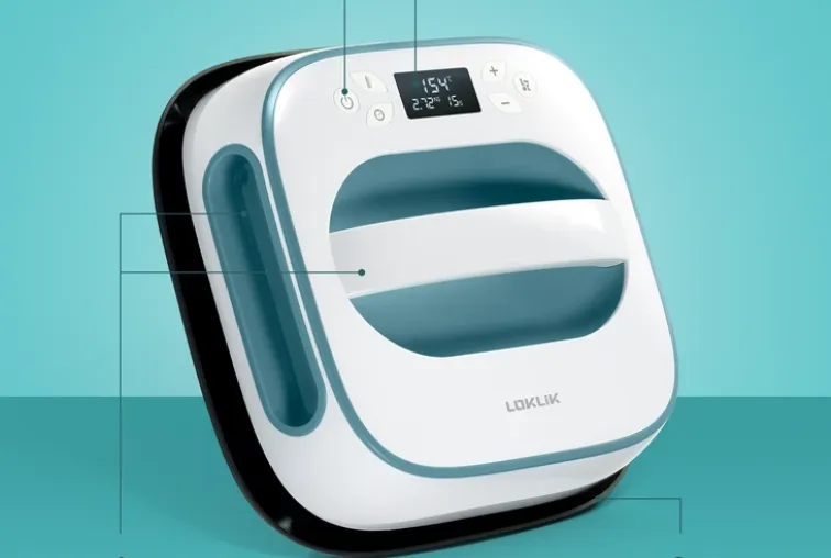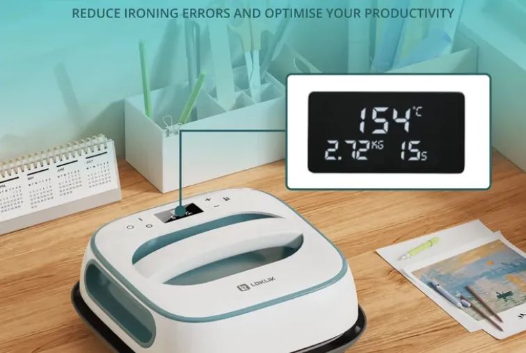 De LOKLiK Heat Press heeft een ontwerp met twee handgrepen, aangevuld met een geïntegreerd digitaal druksysteem dat realtime gegevens op het display weergeeft. Dit veelzijdige apparaat is compatibel met verschillende materialen, zoals Heat Transfer Vinyl (HTV), sublimatiepapier en diverse warmteoverdrachtsprojecten.