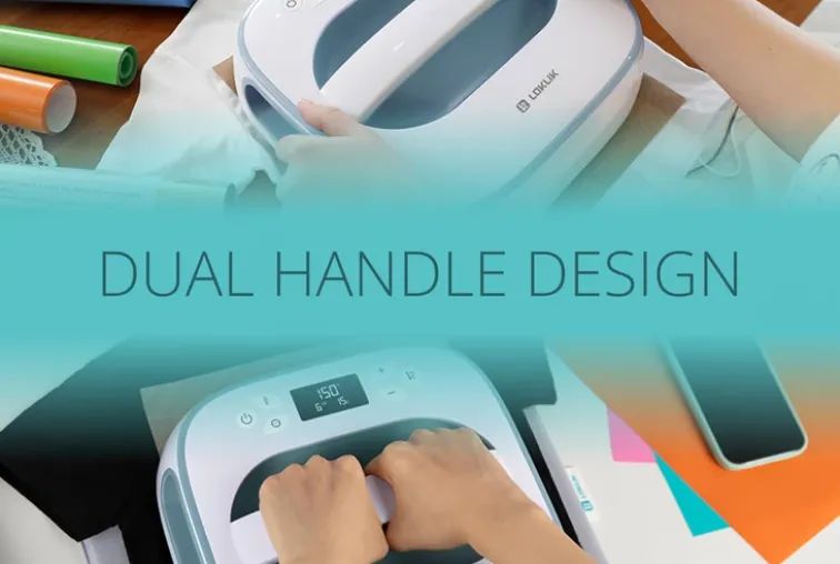 De Heat press is een apparaat met dubbele handgrepen aan beide kanten, vergezeld door een extra bovenste handgreep, waardoor het flexibel en gemakkelijk te gebruiken is.