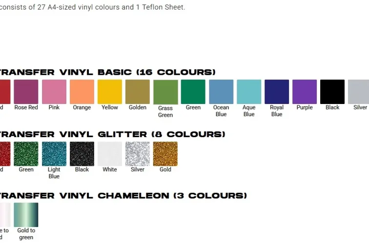 Heat Transfer Vinyl Material Bundle bevat 27 verschillende kleuren van 1 herbruikbaar teflonvel.