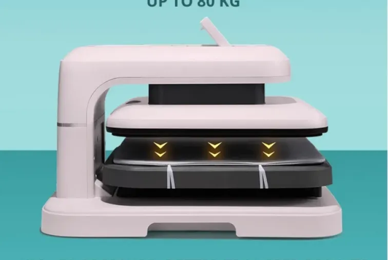 De 38 × 38 cm verwarmingsplaat en de grote uittrekbare perslade bieden voldoende ruimte voor T-shirts, tote bags en kussenslopen. Je kan ook meerdere kleinere projecten tegelijk persen.