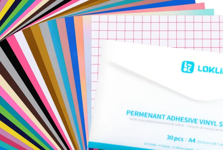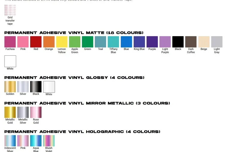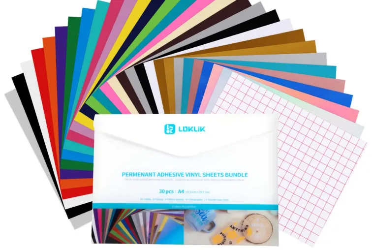 Deze combo bevat 30 verschillende kleuren Permanent Adhesive Vinyl in A4-formaat