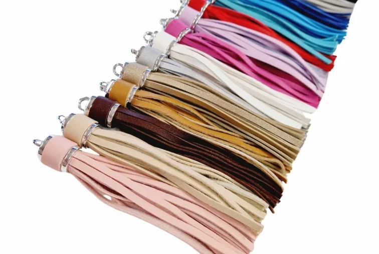 Suede kwastje Large ( = 65 of 80 mm ) met sleutelhanger
